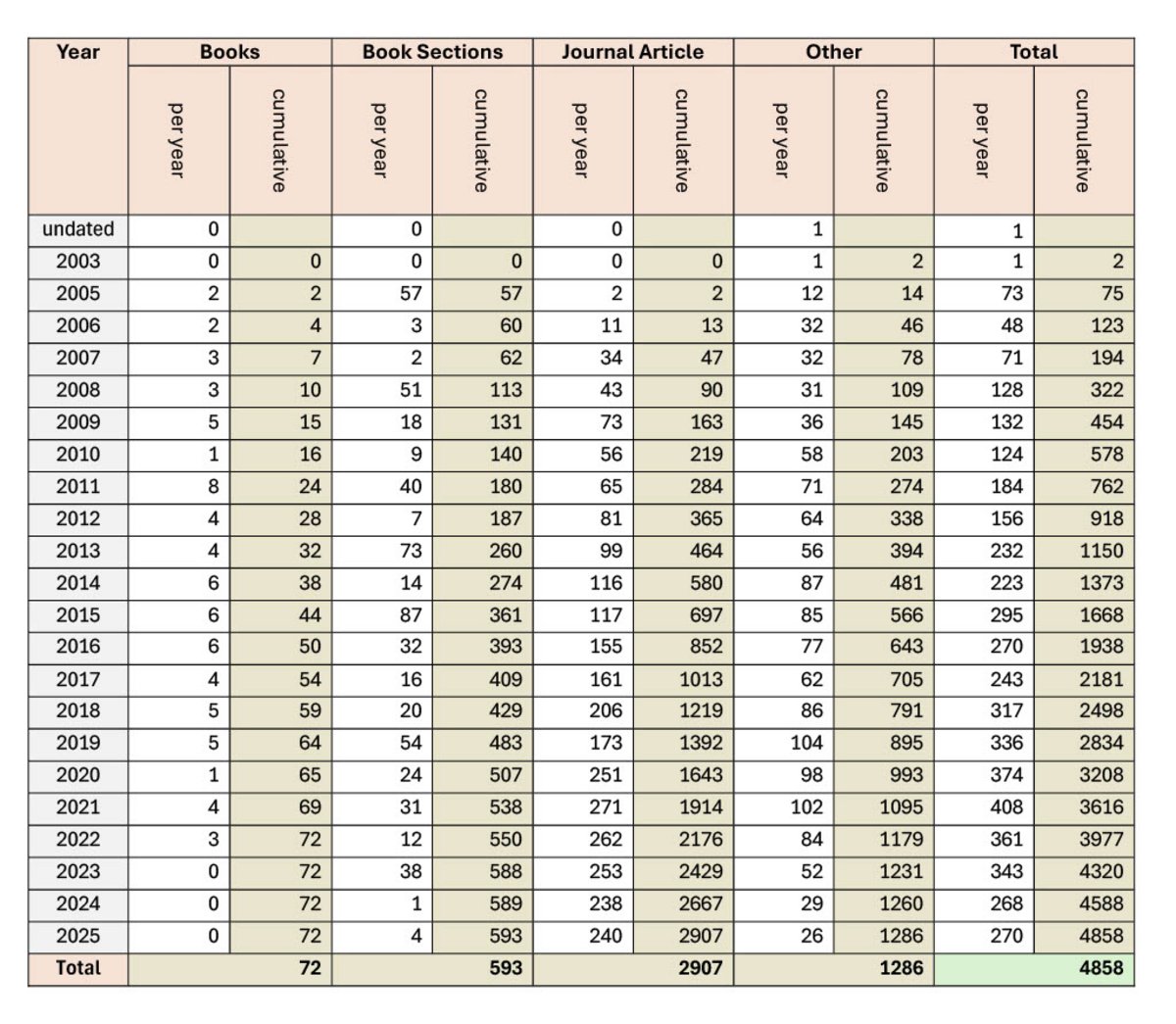 Graphic 2: Publications by Year (Cumulative), December 2025